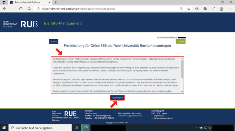 Öffnen Sie die Registrierungsseite https://idm.ruhr-uni-bochum.de/rubiks/azure_freischaltung.startseite in einem neuen Tab.