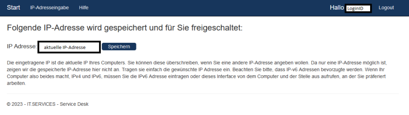 Tragen Sie die gewünschte feste IP-Adresse für die Nutzung der Lizenz ein und bestätigen Sie mit "Speichern".