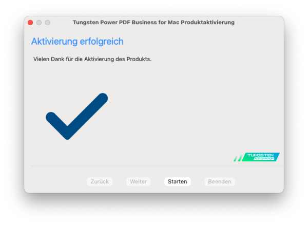 8. Die Aktierung war erfolgreich.