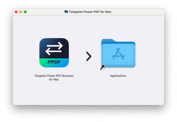 1. Laden Sie Tungsten Power PDF aus dem Campus-So:ware-Portal herunter. Ziehen Sie das Tungsten Power PDF-Icon in den Anwendungen-Ordner.